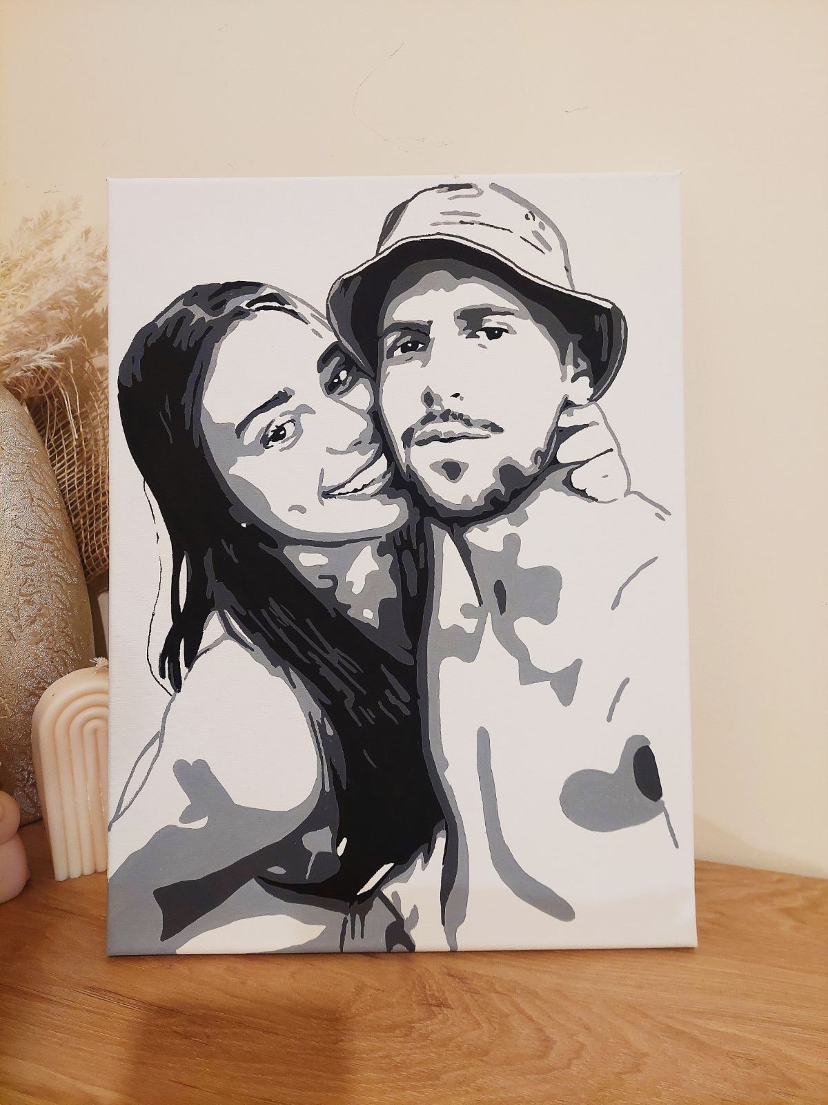 Turn your favourite photo into a timeless black-and-white work of art. The canvas is handmade and hand-painted, capturing your own moments, whether it's a loved one, a pet, your family, or a special memory.